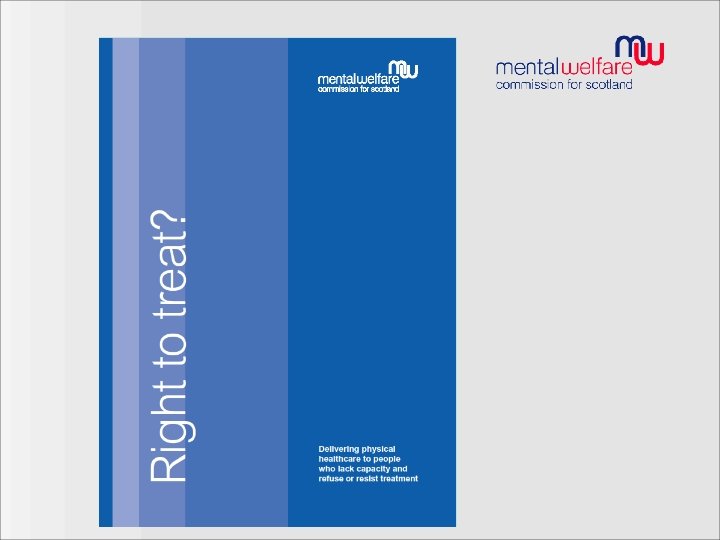Part 5 does not apply to Emergency Treatment Common law allows medical treatment to be given in an emergency to patients who cannot consent. This remains the case and there is no need to go through the steps in Part 5 of the Act in order to give treatment for the preservation of the life of the adult or the prevention of serious deterioration in the adult’s medical condition. Code of practice covers in more detail & also MWC’s Right to Treat good practice guidance.