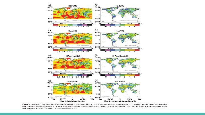 Calculation of cloud cover ★ In Had. AM 3 the cloud cover and cloud water content in a grid box are both calculated from a saturation variable qc. ★ qc is defined as the difference between total water (i. e. water vapour + liquid + ice) and the saturation vapour pressure (Smith, 1990) ★ Had. AM 3 reproduces the effects of clouds on the global radiation budget quite well, but underestimates cloud cover. ★ Had. AM 3 P address this by introducing a modification in which the cloud scheme is called for three sub-layers within each model grid box, calculating cloud cover from values of qc for each sub-layer obtained by vertical interpolation.