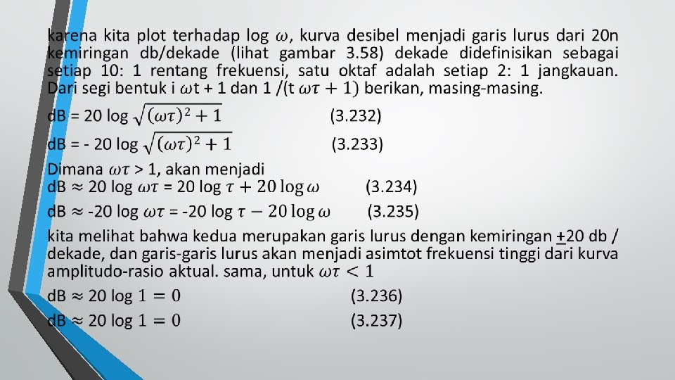 Logaritmic Plotting of Frequency – Response curve •