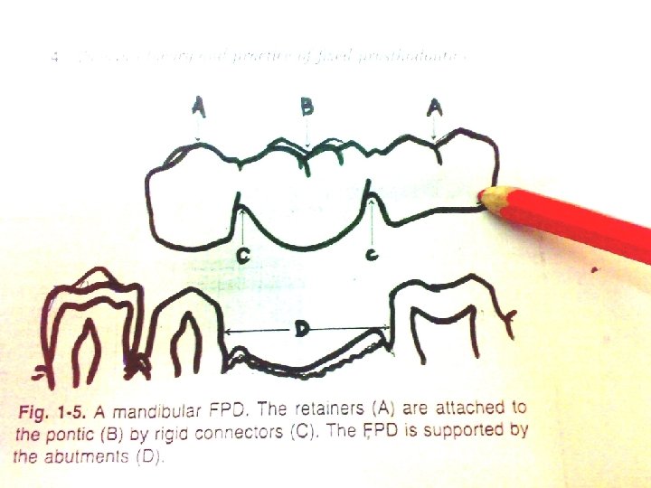 n Retainer n That for an FPD… component of an FPD which takes support from the abutment tooth and provides retention to the prosthesis