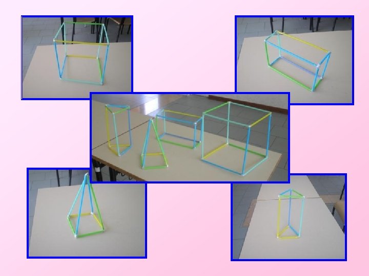 • • • Elaborazione di ipotesi per rispondere alla domanda: ”Gli spigoli negli oggetti osservati sono tutti rettilinei? ”; distinzione spigoli rettilinei e spigoli curvi riconoscendoli in figure solide disegnate e verificando le ipotesi ( tracciare linee rette con il filo di lana e/o con riga e matita) su oggetti o figure a forma di cilindro, di cono e di sfera; Classificazione in solidi che rotolano e solidi che non rotolano (poliedri). Riproduzione dell’ ”impronta” di un oggetto a forma di cuboide e di cubo (disegnando il contorno di una faccia su carta velina e ritagliando le figure ottenute, oppure usando la plastilina o la farina). Ritaglio lungo gli spigoli di scatole a forma di cuboide o cubo (le reti o sviluppo dei solidi) e riconoscimento nelle facce di figure geometriche piane (la bidimensionalità); riconoscimento negli spigoli paralleli e di uguale lunghezza i lati del rettangolo e del quadrato. Riproduzione di reti costituite da rettangoli o da quadrati e rettangoli e costruzione di scatole a forma di cuboide o di cubo.