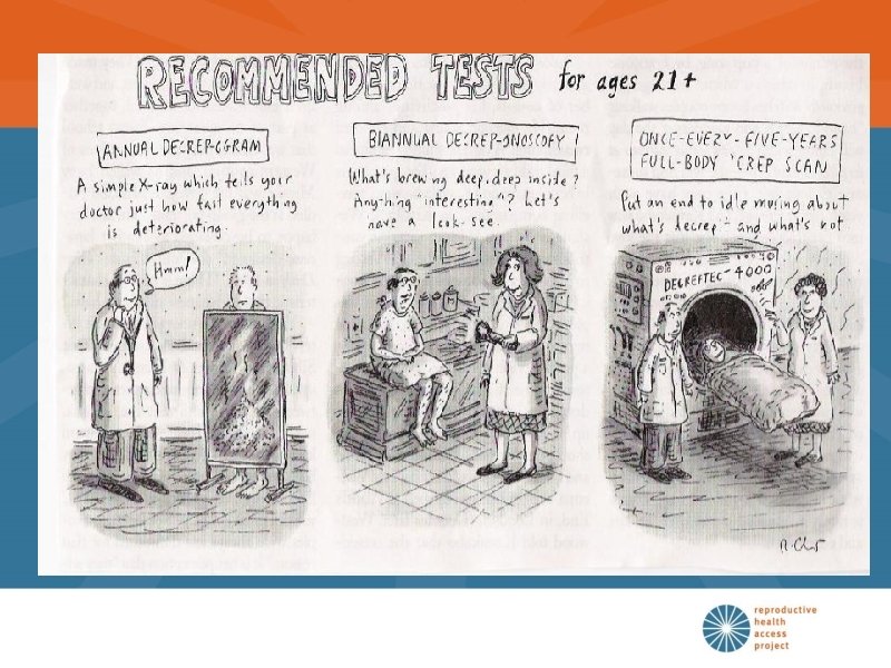 How often do women need a Pap smear? ACOG: • Every 2 years (age 21 -29) • Every 3 years (age 30+) ACS: • Every 2 years if liquid-based test (under age 30) • Every 2 -3 years after 3 normal results in a row OR every 3 years with HPV typing (age 30+) USPSTF: • At least every 3 years