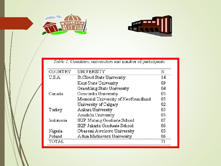 Araştırma soruları Bu araştırmadaki eğitim teknologlarının profili nedir? (Akademik ünvanları, görevleri, eğitsel geçmişi, alanla ilgili kullandıkları kaynaklar, kaynakları tararken kullandıkları dil gibi ) Eğitim teknologlarının eğitim teknolojileri ile ilgili çalışma alanları nelerdir? Eğitim teknologlarının bir disiplin olarak E. T. nin tanımına, hedeflerine, kapsamına, ürünlerine, kullanılan yönteme ilişkin algıları nelerdir? Eğitim teknologlarının ülkelerindeki eğitim teknolojisi uygulamalarına ilişkin görüşleri nelerdir? Eğitim teknologlarının algıları ve düşünceleri ülkelerinin gelişmişlik düzeyine göre değişmekte midir?