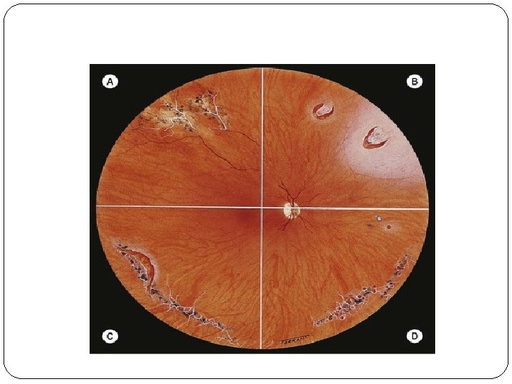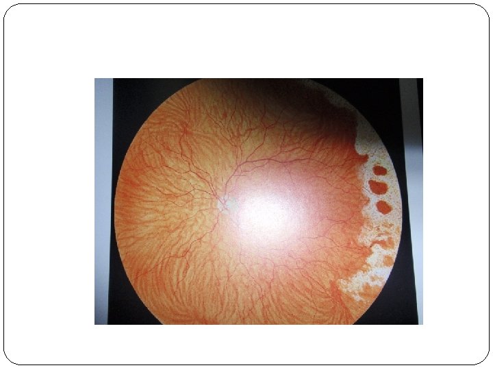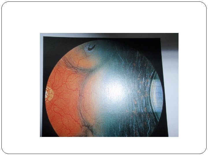 Diagnosis of tractional retinal detachment �Symptoms Visual field defects Signs a - Retinal detachment –Concave configuration b - Retinal mobility is severely reduced.
