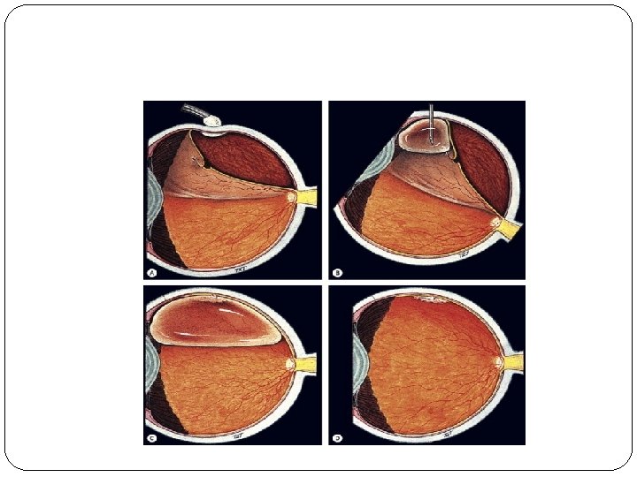 �Treatment 1 -Pneumatic retinopexy(SF 6 -sulphur hexafluoride, C 3 F 8 -perfluoropropane) 2 -Scleral buckling 3 -Drainage of SRF 4 -Pars Plana Vitrectomy