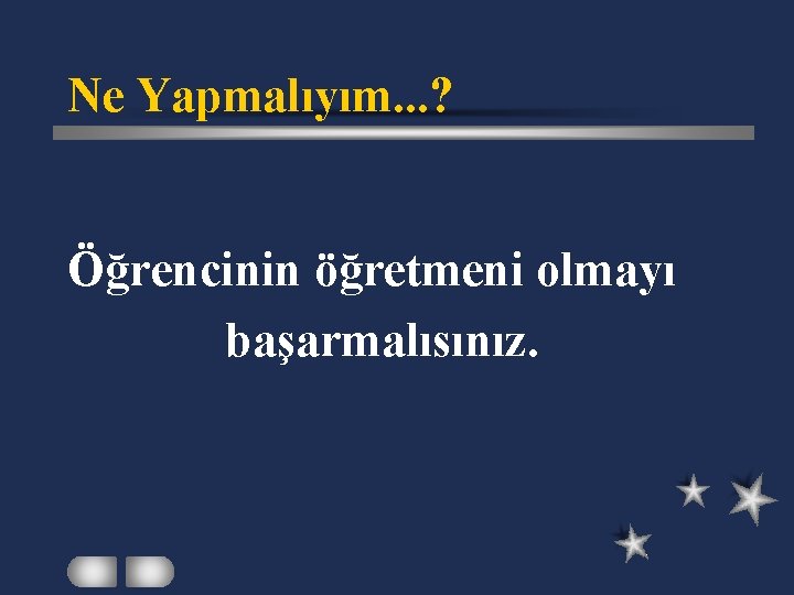 Ne Yapmalıyım. . . ? Öğrencinin öğretmeni olmayı başarmalısınız.