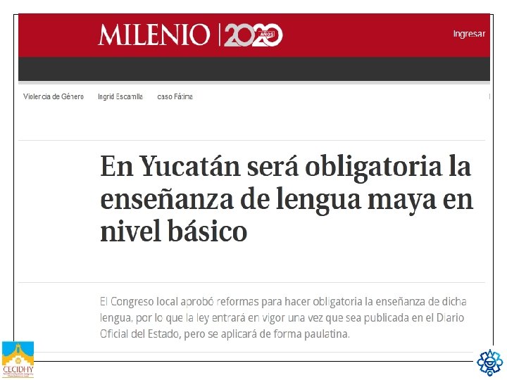 La Maayat’aan En el marco del año de la lengua maya en el Estado de Yucatán y del Año Internacional de las Lenguas Indígenas, la LXII Legislatura del Estado Libre y Soberano del Estado de Yucatán propone modificar la Constitución Política del Estado a favor de la lengua maya 11