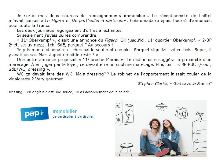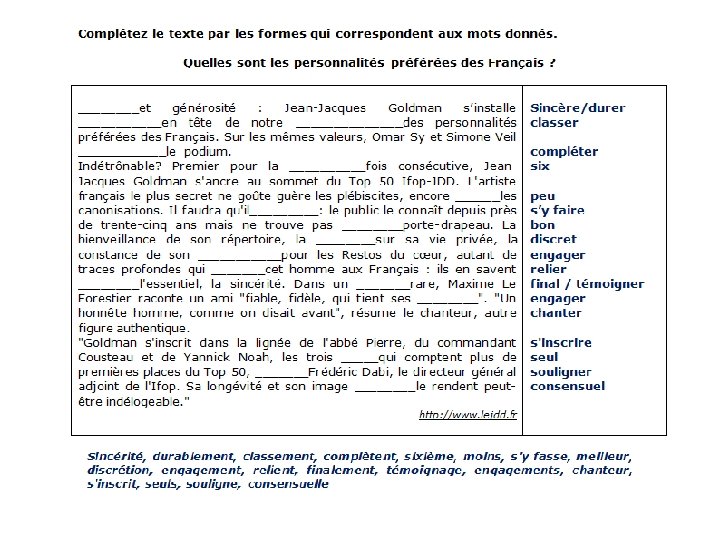 TRAVAILLER LES GESTES CULTURELS Expressions idiomatiques: 1) J´en ai ras le bol. 2) Ça lui est passé sous le nez. 3) C´est rasoir! 4) Mon oeil! 5) Et toc! 6) Il est bourré. 7) Motus et bouche cousue. 8) J´ai les chocottes! 9) Je croise les doigts. 10) Hum! C´est délicieux! Définitions: a) C´est ennuyeux! b) Je n´y crois pas. c) Il est saoul. d) C´est un secret. e) J´ai peur! f) C´est très bon! g) J´ai raison. h) Il a raté tout juste. i) J´en ai assez. j) J´espère, je souhaite. Réponses: 1/I , 2/H, 3/A, 4/B, 5/G, 6/C, 7/D, 8/E, 9/J, 10/F