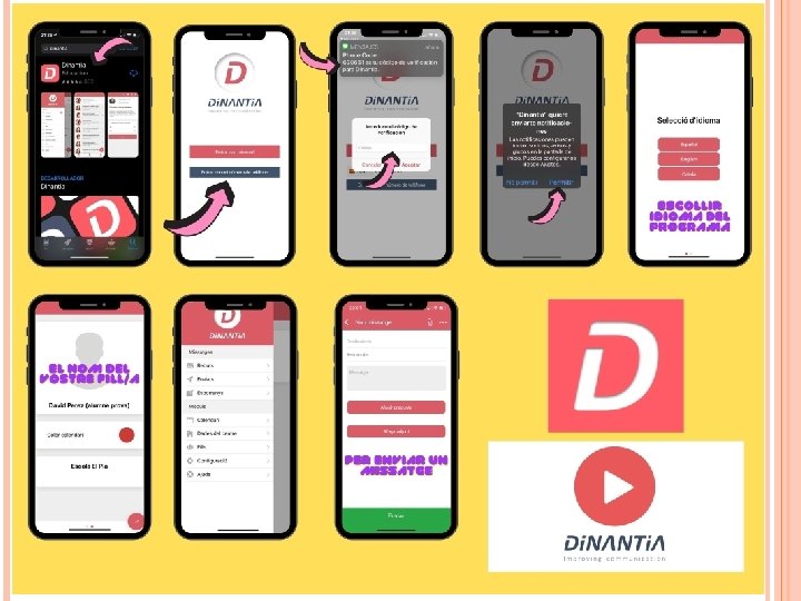 RECORDATORI DELS RECURSOS DE L’ESCOLA 1. Com entrar al Blog de l'escola? 1. Com descarregar-se DINANTIA? (següent diapositiva en imatges) ● ● ● És una app GRATUITA per les famílies Descarregar-la al móvil a través del Google play o l’Apple Store Posar al buscador DINANTIA Us preguntarà si entrar amb el e-mail o amb el telèfon mòbil (si no heu donat el correu electrònic a l’escola, només hi podreu entrar amb el número de telèfon) Un cop entrat rebreu un missatge (sms) al número de móbil, l’heu d’entrar a l’aplicació. El primer cop de descarregar-la us demanarà que heu de crear un PIN. És molt important ja que aixì podreu signar autoritzacions (és com una signatura digital)