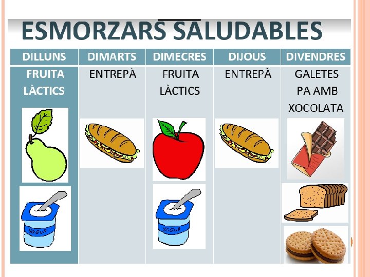 COMENCEM EL CURS 20 -21 ● DONEM CONTINUÏTAT AL PROJECTE D’ESCOLA PERÒ ADAPTAT A LES NOVES CIRCUMSTÀNCIES ● APRENEM A TRAVÉS DE METODOLOGIES OBERTES I VIVENCIALS: ○ Treball per AMBIENTS ○ Biblioteca d’escola / aula ○ Escoltem Com Parlen: El llenguatge oral ○ Matemàtiques Manipulatives ○ Sortides per l’entorn ○ Esmorzars saludables ■ Dilluns i dimecres entrepà, dimarts i dijous fruita, divendres dolços