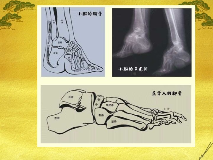 FOOTBINDING The custom of binding the feet of young girls painfully tight to prevent further growth. The practice probably originated among court dancers in the early Song dynasty, but spread to upper class families and eventually became common among all classes. The tiny narrow feet were considered beautiful and to make a woman's movements more feminine and dainty. Although reformers challenged the practice, it was not until the early twentieth century that footbinding generally died out, partly from changing social conditions and partly as a result of anti-footbinding campaigns. [1] Foot-binding resulted in lifelong disabilities for most of its subjects. In the 1990 s and early 2000 s, some elderly (born until the mid-1940 s) Chinese women still suffered from disabilities related to bound feet