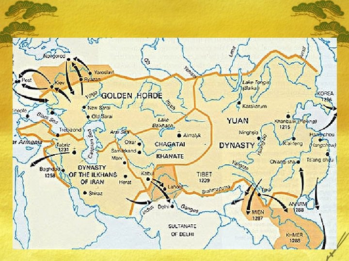 Tang and Song – Golden Age £ Grand Canal – designed to link original centers of Chinese civilization on the north China plain with the Yangtze River basin more than 500 miles to south £ Made it possible to transport grain from the fertile southern regions and to transfer food from the south to districts threatened by drought and famine in the north £ More than 1 million forced laborers had worked on the project, many died £ Engineering achievement (on the same level as Great Wall) £ 1200 miles long, 40 paces wide