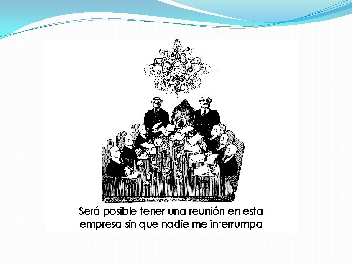 ¿Qué es una reunión? �Conjunto de personas que tienen o deberían tener en común el deseo de alcanzar un objetivo. �Una reunión tiene una función precisa y desemboca en un resultado congruente con el objetivo marcado. �Una cantidad importante de reuniones se celebran sin que exista razón suficiente para ello. Alguien decide reunir a una serie de individuos con un pretexto cualquiera y, mientras dura la reunión, los asistentes se preguntan sobre el sentido y la necesidad de la misma.