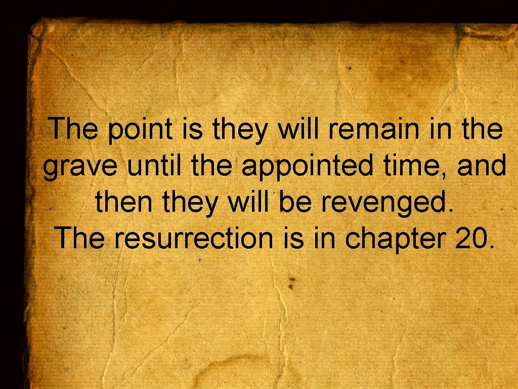 The point is they will remain in the grave until the appointed time, and then they will be revenged. The resurrection is in chapter 20.