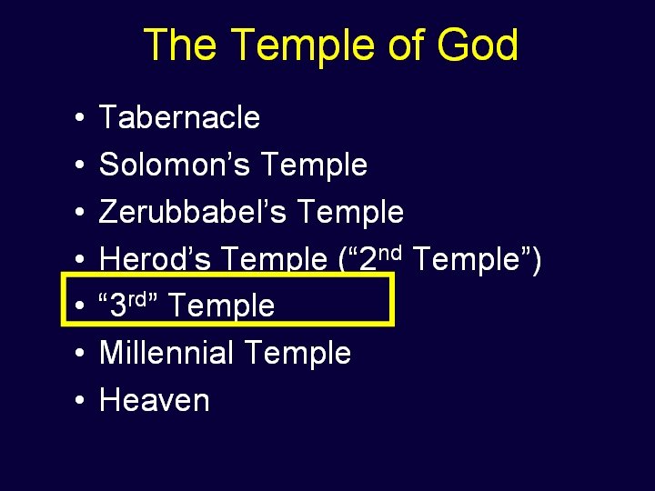 The 3 rd Temple (Matthew 24: 15) When ye therefore shall see the abomination of desolation, spoken of by Daniel the prophet, stand in the holy place, (whoso readeth, let him understand: )