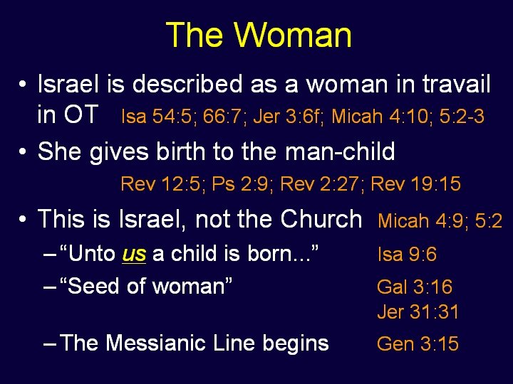 Revelation 12: 13 And when the dragon saw that he was cast unto the earth, he persecuted the woman which brought forth the man child. Revelation 12: 13