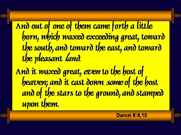 Ten Horns “Ten horns” suggests the final division of the Roman Empire, which is dominated by Satan and which is his final effort to rule the world. The crowns are on the horns, not on the heads, since it is delegated power from Satan. The crowns represent kingly authority and rulership.