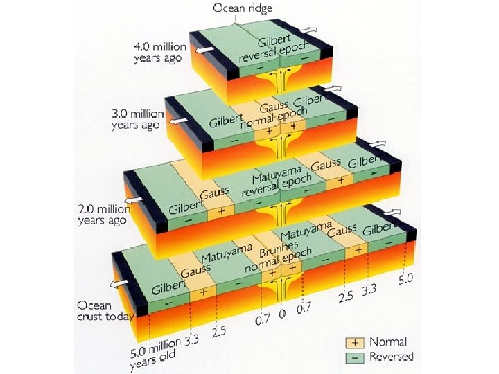 Seafloor spreading is a tape recorder of the geomagnetic field! Age, Ma The recorded reversal chronology crust moho upper mantle The tape drive The recording head of the tape recorder