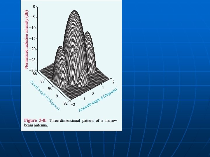 Example n Determine the direction of maximum radiation , pattern solid angle, directivity and HPBW in the y-z plane for an antenna with normalized radiation intensity given by