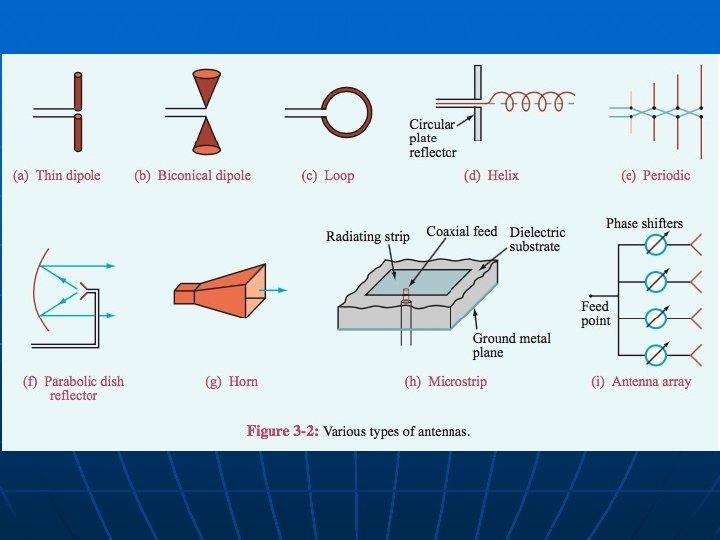 Types of antennas n Can be divided into two groups • Wire antennas: n dipoles, loops, Yagi-Uda… • Aperture antennas: n parabolic, horns, microstrip antennas… http: //www. kyes. com/antennatypes/antennatypes. html http: //en. wikipedia. org/wiki/Antenna_(electronics)#Overview
