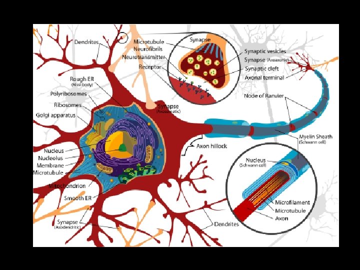 Facts about Neurons … • 100 billion neurons or nerve cells in the human nervous system. • Some are small and some are over 1 metre long. • Neurons are nerve cells that transmit nerve signals to and from the brain at up to 200 mph. • A typical neuron has about 1, 000 to 10, 000 synapses (that is, it communicates with 1, 000 -10, 000 other neurons, muscle cells, glands, etc. )