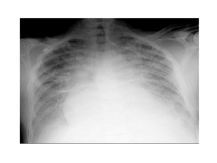 Congestive Cardiac Failure • • • Alveolar oedema Kelly B lines Cardiomegally Upper lobe deviation Pleural Effusion
