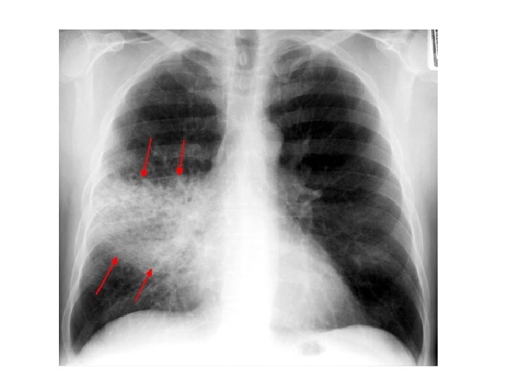 Lobar Pneumonia and Bronchopneumonia • Lobar pneumonia is usually unilateral and involves a lobe • Bronchopneumonia is usually bilateral with patchy reticulonodular opacities.