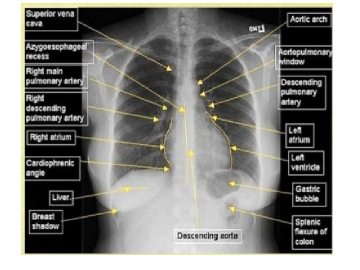 Widened mediastinium • Diagnostic feature—widened mediastinum (>8 cm at level of aortic knob) • Causes : aortic aneurysm, traumatic aortic rupture, aortic unfolding, mediastinal lymphadenopathy, pericardial effusion