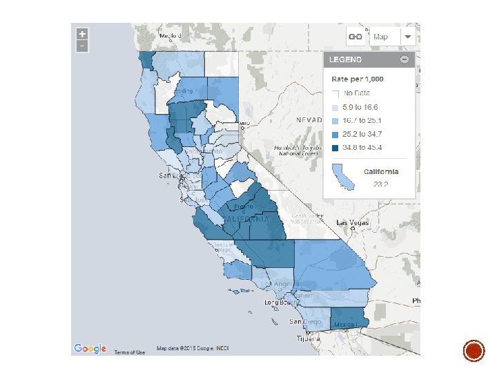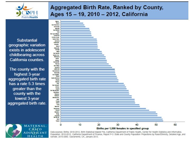 Of the following counties, who has the two highest teen birth rates in the State: A) Kern B) San Francisco C) LA D) Tulare