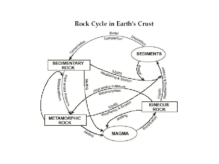 The Rock Cycle Diagram on Page 6 • ONE BIG CIRCLE. • Words with rectangles = types of rock • Words with ovals = states of rock • Arrows = Actions taken to change/make rocks.
