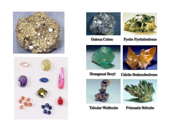 What is a mineral? 1. Naturally occurring- not man made 2. Inorganic- not from living things 3. Chemical composition – definite formula 4. Crystalline form- a unique crystal shape. 5. Solid- cooled to form solid structure