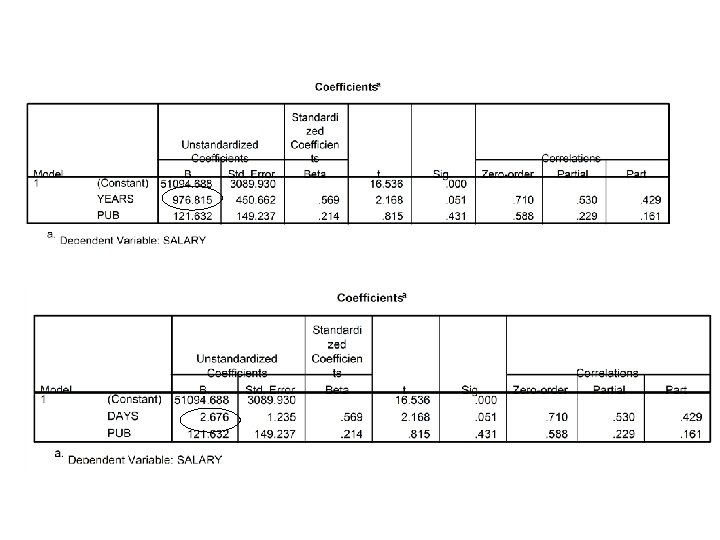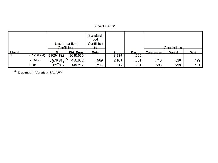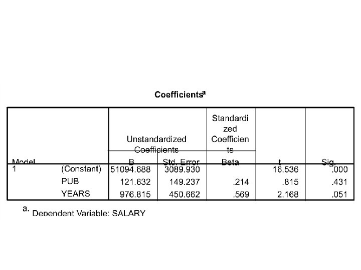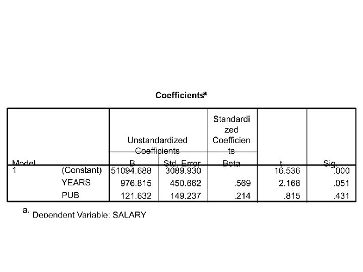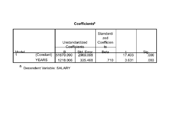 Standardized Regression Coefficients • With single IV • Correlation between years and salary (r =. 71) is the SAME as the standardized regression weight!