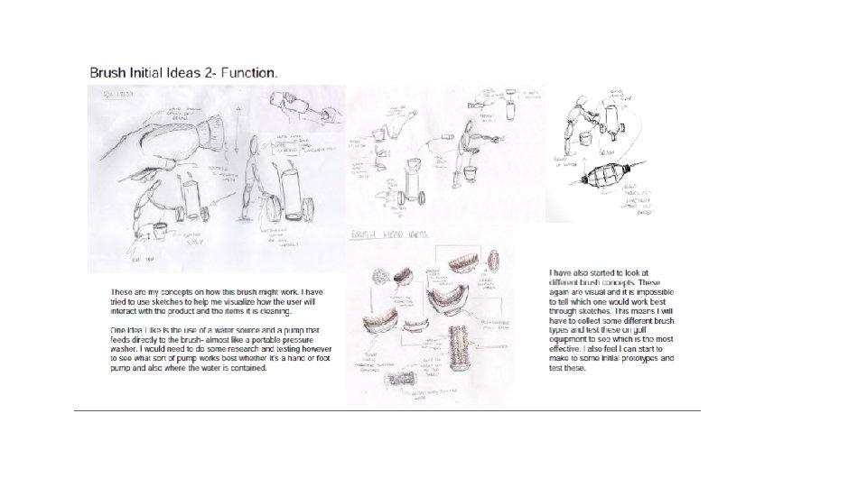 Task 1 Bullet point all of the ideas from your research and client profile that you need to consider when designing your product. This will form the beginning of a design specification later Slide 5 and 6 show examples of initial ideas. The drawings are clearly annotated and the student has really though about how the product would be used. Task 2 Sketch out some initial ideas for a range of products in pencil only. Do not worry about your drawing at this stage, just really consider creating a new and exciting product idea. Annotate your ideas in full to explain where they have come from Use you knowledge and understanding from DT last year to annotate possible techniques an materials at the same time. I suggest you do 2 A 3 pages or equivalent for this stage to really start the thinking process Include additional research on the pages of other products or close up of products or materials or designer work that may help you develop your ideas further Accessfm will also help you to annotate your pages in more detail This work will be used to develop modelling for your designs at a later date.