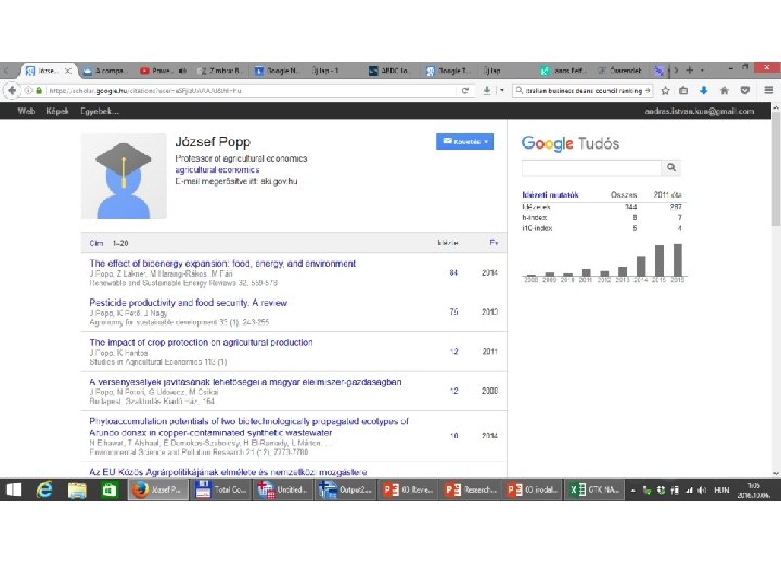 Quality in research (Scientometrics) • The most accepted field of qualification is based on journals. • Academic journals • Referred journals • Peer reviewing • Journal qualification systems – – Based on citation (aim: measuring impact) Rankings Impact factors Hirsch index (h-index), half-life, immediacy – „Page rank”, altmetric score…