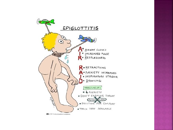 Cause: H influenzae bacteria Life threatening airway obstruction
