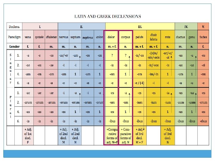 Use of Comparatives in Anatomical Terminology � Comparative forms are used in anatomical terminology when two phaenomena of the same kind occur or when we want to denote location: circulatio sanguinis major / minor cornu majus / minus ossis hyoidei