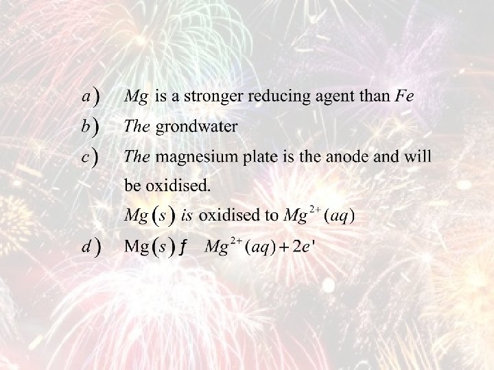 OXIDATION • Oxidation is a loss of electrons • The oxidation number increases • E. g. • Electrodes where oxidation take place will reduce in mass • We write the oxidation reaction ‘upside-down’ from the table • Reducing agent ANODE The electrode where oxidation takes place