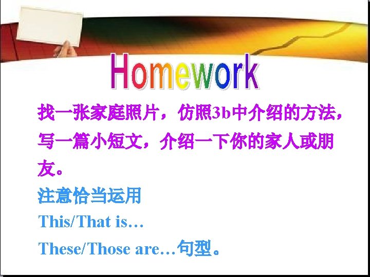 Here’s an example: Jack Here is a photo of my family. Hi. I’m _____. my grandparents. These are ______ Those are my parents. _________ This is my brother _________ Bob. That is my cousin _________ Dale. _________