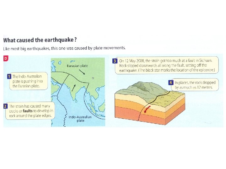 Activity 3 • Points to include: • Indo-Australian plate collides with the Eurasian • Fault develops • Strain forced the rock to slip downwards • It slipped as much as 12 meters