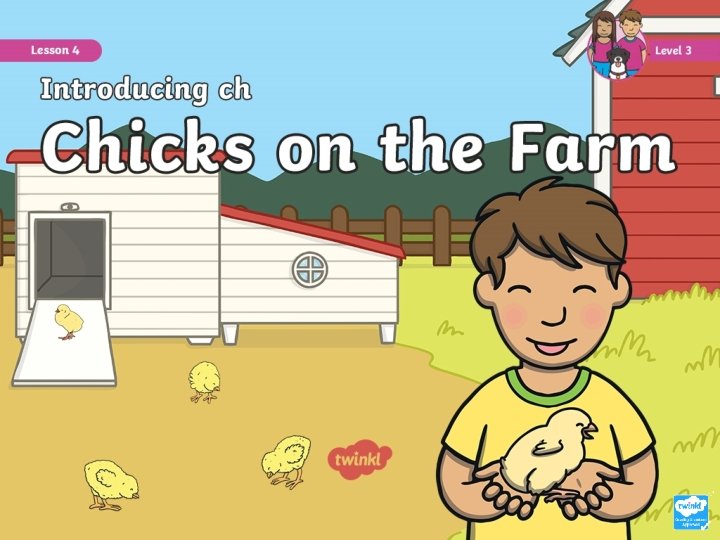 Teach Last of all, the family went to see the newly hatched chicks. The chicks cheeped and cheeped as they ran around the barn. What a lot of noise! “ch, ch, ” Sam and Kit said to the chicks.