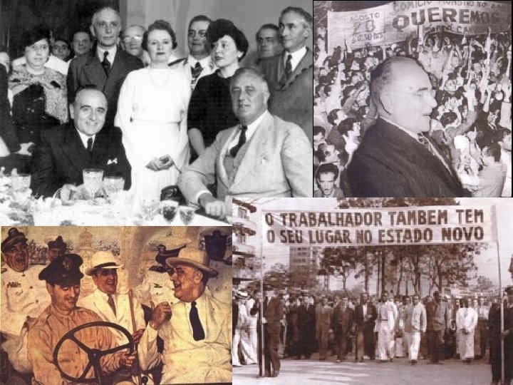 • • ESTADO NOVO – 1937 – 1945: Em 10/11/1937 Vargas apresentou ao Congresso a nova constituição do Brasil, apelidada de ‘polaca’, pois recebeu influências da constituição fascista da Polônia em sua elaboração. Francisco Campos foi seu autor. – O Executivo recebeu amplos poderes e incorporou as determinações do Legislativo. – As leis trabalhistas foram mantidas e ampliadas em alguns pontos. – O Presidente é que nomeava os Interventores (Governadores) dos Estados. • • Não se pode enquadrar o Estado Novo como fascista, muito embora desenvolvesse características semelhantes. Em 1938 há uma tentativa de Golpe Integralista: – Cerca de 200 integralistas atentaram contra a vida do Presidente, que apenas com os familiares e alguns seguranças conseguiu segurar as forças invasoras que acabaram presas. • Vargas desenvolve uma política ambígua em relação ao seu posicionamento internacional: – Em determinados momentos parecia que tenderia ao lado dos Estados Unidos, em outros momentos parecia tender ao grupo nazi-fascista. – Nessa política, Getúlio conseguia vantagens econômicas para o Brasil, negociando com os dois lados. – Da Alemanha, conseguiu preços diferenciados para a compra de armamentos, enquanto que dos EUA, conseguiu os recursos para a construção da Companhia Siderúrgica de Volta Redonda. – Em 1942 Vargas opta pelos EUA e declara Guerra aos países do Eixo: • • Nesse episódio o Brasil envia para lutar na Itália, 25. 000 soldados na Força Expedicionária Brasileira (FEB). O Brasil entrou no conflito alegando que alguns de seus navios haviam sido afundados por submarinos alemães. Em Agosto de 1942, os descendentes de Alemães, Italianos e Japoneses sofreram perseguições, destruição de patrimônio e violências em algumas regiões do país. Os principais órgãos do Governo Vargas eram: – DIP: Departamento de Imprensa e Propaganda: • Responsável pela imagem do Presidente e pela Censura. – DASP: Departamento de Administração e Serviço Público: • Responsável por agilizar as contratações de pessoal e funções dentro de órgãos públicos.