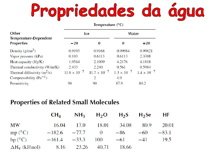 PROPRIEDADES DA MOLÉCULA DE ÁGUA