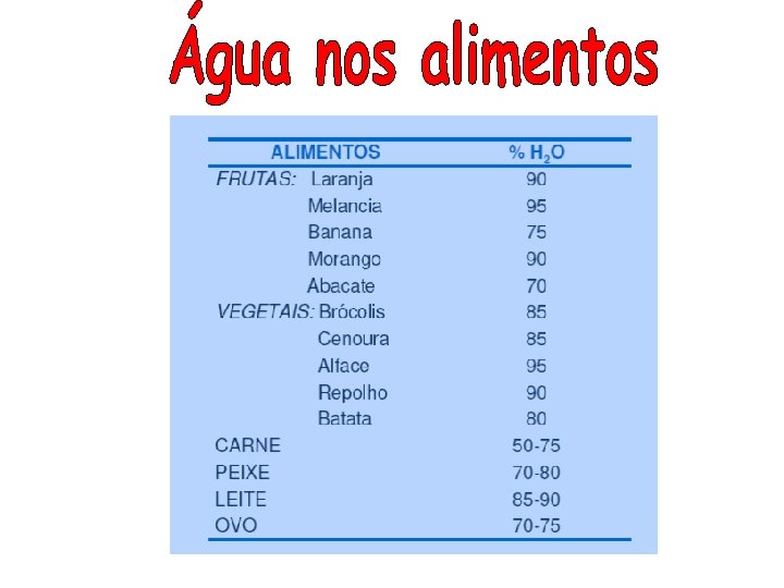 Propriedade Água Coonstitucional Pressão de vapor relativa (p/p 0) <0, 02 p/p 0 0, 02 – 0, 2 p/p 0 Zona na isoterma Extremo esquerda, zona I Zona I Mol H 2 O/mol prot. seca < 8 8 – 56 g H 2 O/g prot. seca < 0, 01 – 0, 07 % peso (lisozima) 1 1 – 6, 5 Estrutura da água Parte crítica da estrutura nativa da proteína Água interage primariamente com grupos carregados (~2 HOH/grupo). Tempo de residência 10 -2 – 10 -8 s < 10 -8 Capac. de congelamento Não congela Poder de solvatação Nenhum Estrutura da prot. Enovelada, estável Regiões amorfas, regiões de transição vítrea Ativ. Enzimática Negligenciável