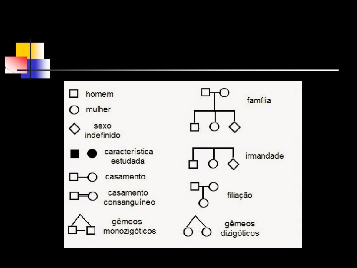 Genealogias ü Genealogia ou Heredogramas. ü Representação gráfica da herança de uma ou mais característica genética em uma família.