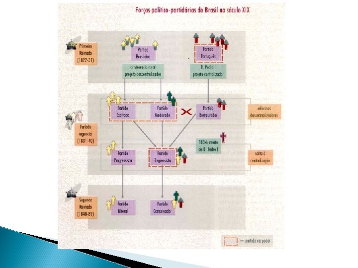 Partidos políticos no Período Regencial Restauradores: Caramuru/Retrógrado Liberal Moderado: Chimangos Liberal Exaltado: Maragatos/ Farroupilhas