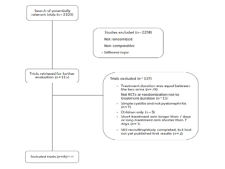 Eliakim-Raz N et al. Duration of antibiotic treatment for acute pyelonephritis and septic urinary tract infection-- 7 days or less versus longer treatment: systematic review and meta-analysis of randomized controlled trials. J Antimicrob Chemother. 2013; 68(10): 2183 -91.