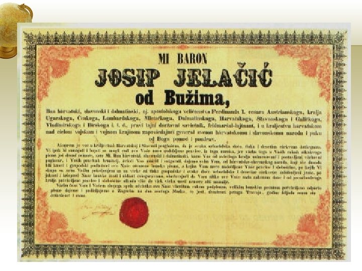 Rezultati: q. UKIDANJE FEUDALNIH ODNOSA q Proglas bana Josipa Jelačića o ukidanju kmetstva
