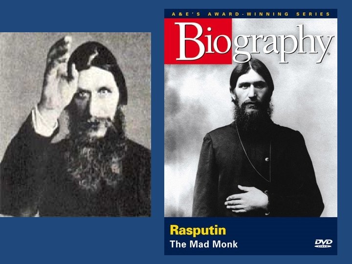 Rasputin • Self-declared religious leader who seemed to be able to cast a hypnotic spell of people • Was reported to have mysterious powers • Drank poison without dying