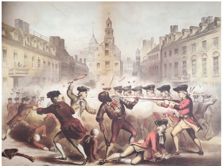 Boston Mass. q. High tensions between British and Bostonians over enforcing British policies. q. March 1770, the British shed Colonial blood for first time blood. q. The relationship between the Colonies and England would never improve q. Used as propaganda
