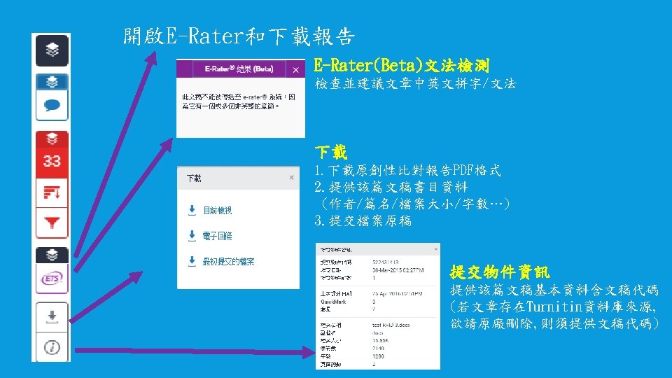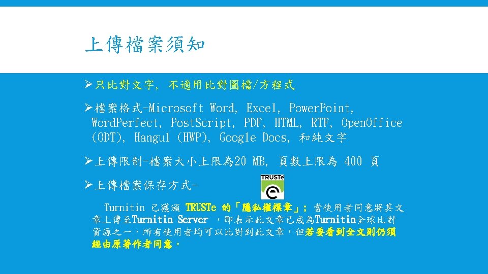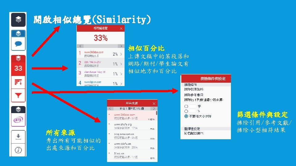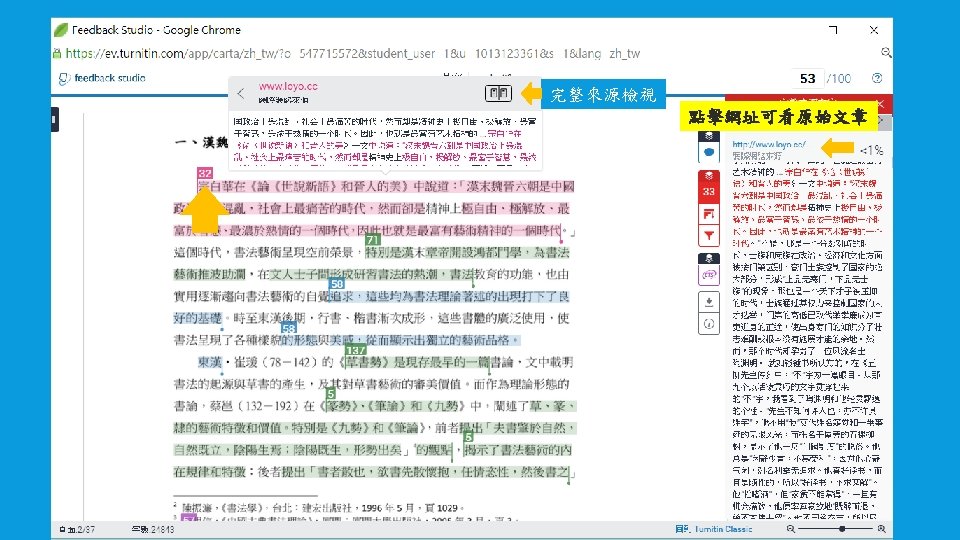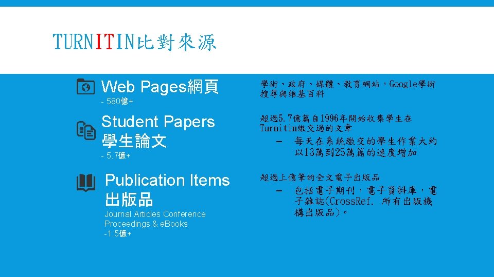 TOP 10 常見非原創行為(2) #5. Recycle #6. Hybrid 重拾自己過去文 章, 無註明引用處 #7. Mashup 混合式(有些有註明 引用處, 有些沒有) 匯整複製多種資料來 源 Combines perfectly cited sources with copied passages without citation Mixes copied material from multiple sources Borrows generously from the writer’s previous work without citation #8. 404 Error 錯植引用出處 Includes citations to nonexistent or inaccurate information about sources #9. Aggregator 匯集並註明引用處 但幾乎無自己意見 Includes proper citation to sources but thepaper contains almost no original work #10. Re-tweet 適當引用. 但字詞或 是內容結構幾乎相似 Includes proper citation, but relies too closely on the text’s original wording and/or structure